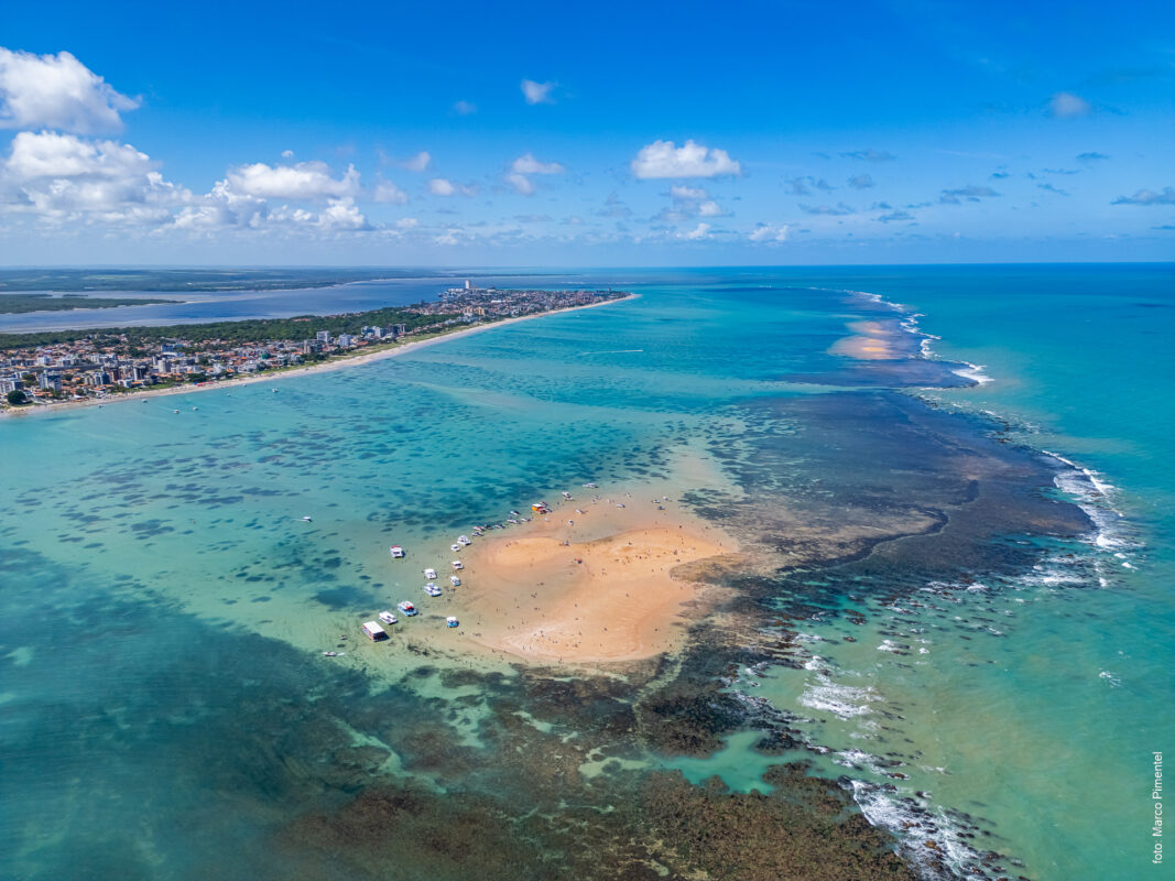 Fenômeno natural impressiona turistas no litoral norte da Paraíba com faixa de areia que surge no mar