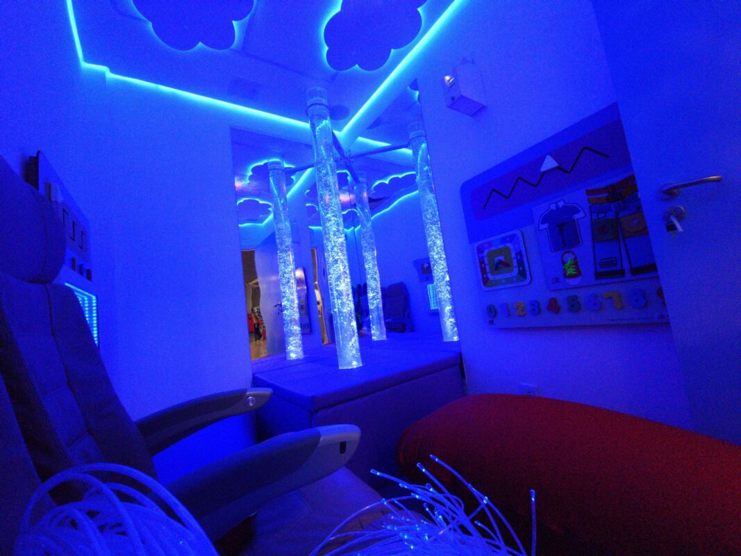 A sala multissensorial é essencial para passageiros com hipersensibilidade ou Transtorno do Espectro Autista, pois oferece um ambiente de descompressão isolado. Este espaço ajuda a regular o estresse, oferecendo alívio em relação aos estímulos externos (luzes, sons e movimento do aeroporto) e promovendo bem-estar.