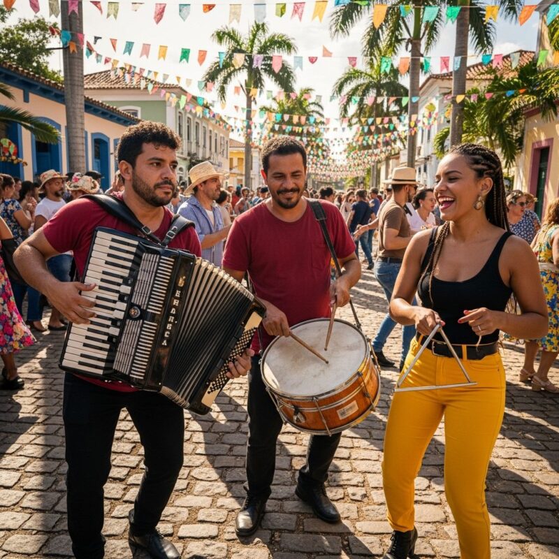 - Dança: Casais dançam com corpos colados, arrastando os pés no chão, movimento que deu origem ao popular termo “arrasta-pé”.