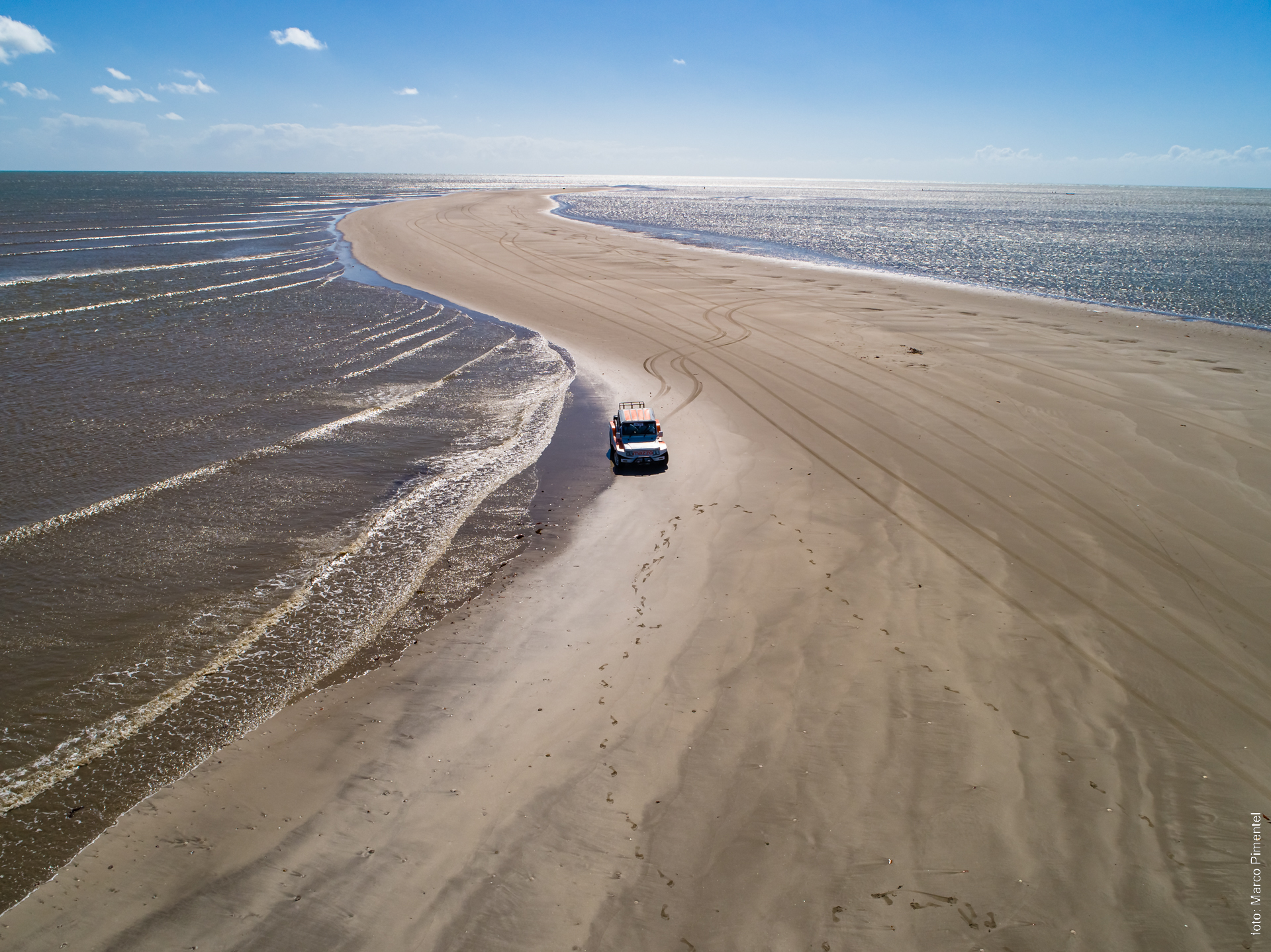 A faixa de areia se projeta mar adentro, formando um cenário perfeito para quem busca tranquilidade e contato com a natureza. Foto: Marco Pimentel