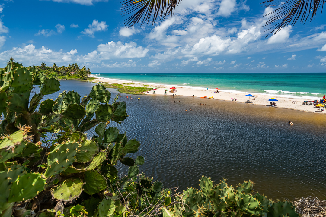 Um dos pontos mais fascinantes da praia é o encontro entre o rio e o oceano, formando o famoso maceió — uma espécie de lagoa natural de águas calmas e quentinhas.