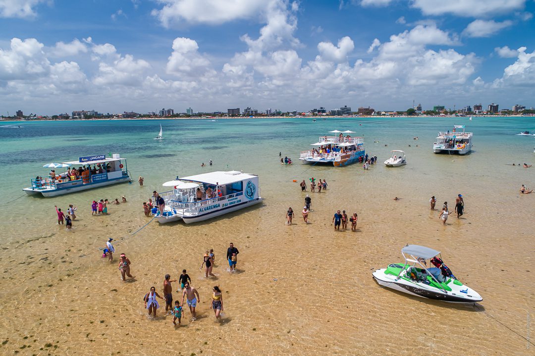 A Ilha de Areia Vermelha emerge com a maré baixa, revelando um paraíso temporário no litoral da Paraíba. (Foto: Marco Pimentel)