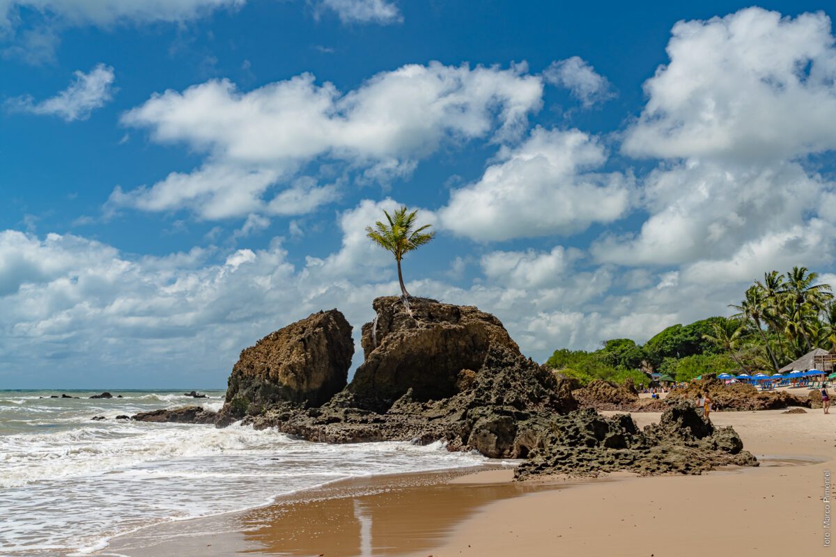 - Paisagem Icônica: Cenário com falésias, pedras, mata atlântica e o famoso coqueiro sobre a pedra, um dos pontos mais fotografados da Paraíba.